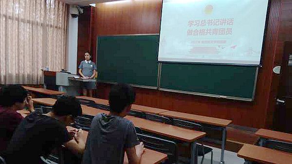 团课传达了习总书记在今年全国“两会”上的重要讲话精神,即各级团组织和广大团组织要紧密地团结在以习近平同志为核心的党中央周围,牢固树立“四个意识”,扎实开展“一学一做”教育实践,全面推进改革攻坚、从严治团各项工作,撸起袖子加油干,以扎实业绩迎接党的十九大胜利召开。在团课上,伍丹老师要求赌博游戏app