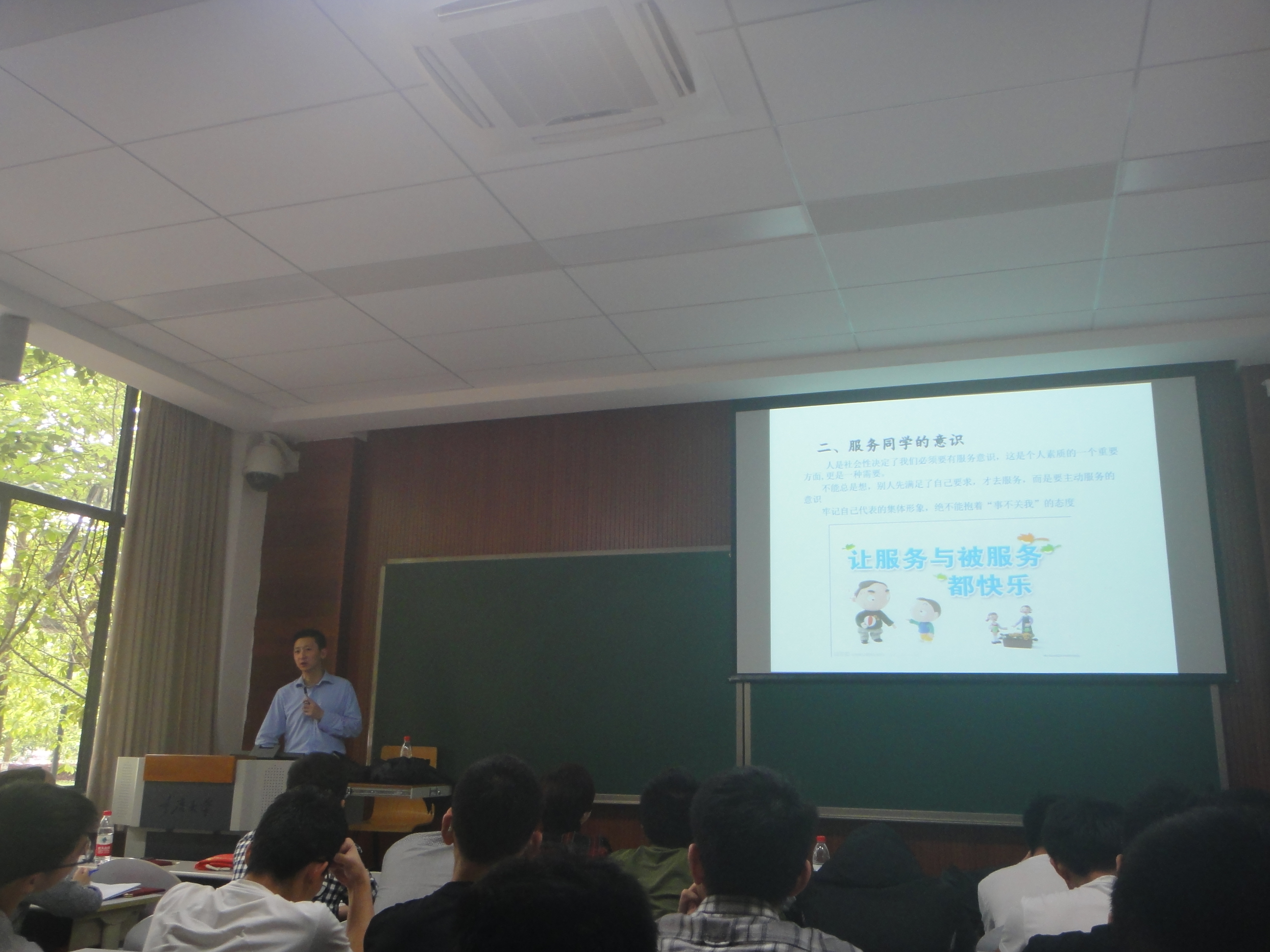 陈大勇部长强调,每一个从事学生工作的人首先一定要有理想、要有行动、有路径、能坚持,把学生工作当成一种信仰,积极采取行动,不消极怠事。他还告诉在场的学生干部们,服务同学的意识要渗到工作生活的方方面面,要时刻铭记学生干部是学生选出来的干部,服务同学是学生干部应尽的职责。