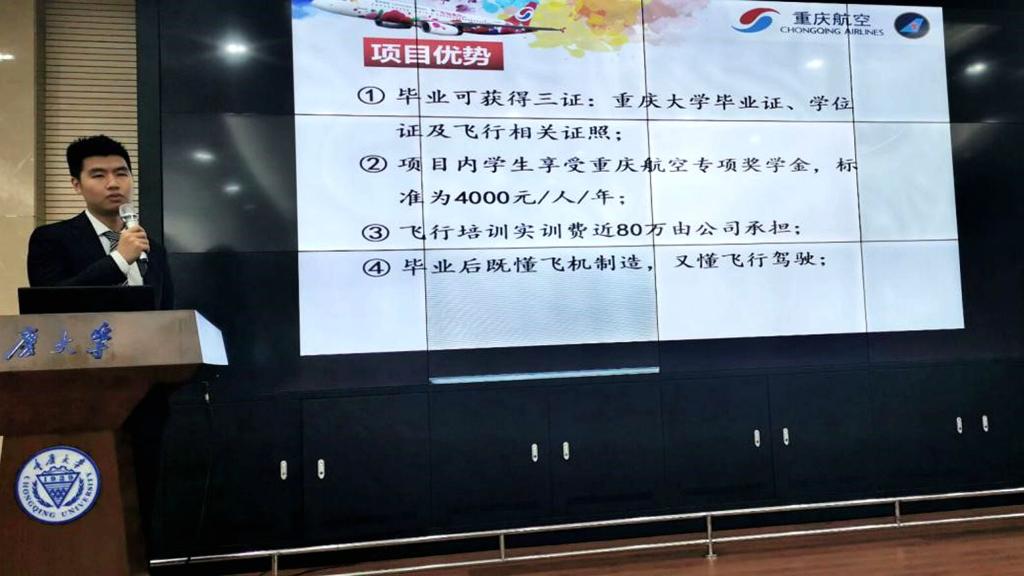 的发展历程和本项目的未来发展前景。接下来是来自重庆航空公司的主持人介绍了有关本项目的详细情况,使得同学们可以更清晰地了解了本项目的具体内容并使他们决定了是否参加本项目。