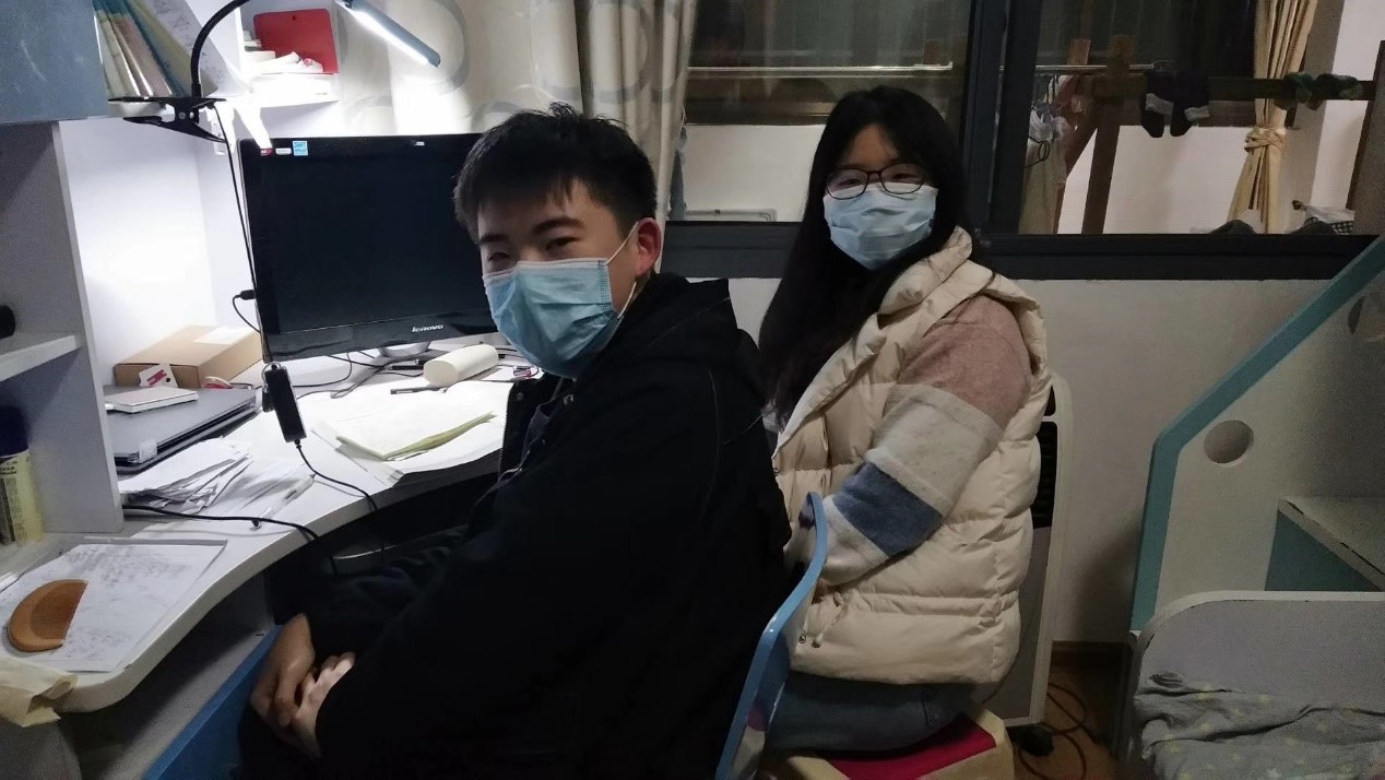 2017级工程力学专业周雨晴同学得知有一位援鄂医生的儿子今年即将高考,她主动联系,为这位高三学生补习数学、英语课程。