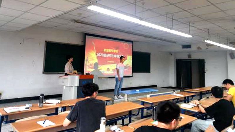 研究生团委学生会学术实践部部长黄宏志同学为2020级新生介绍了航院团委学生会的五大职能部门,对其主要职能与举办的活动做了简单介绍,并鼓励2020级新生在搞好科研的基础上踊跃参与学生工作。