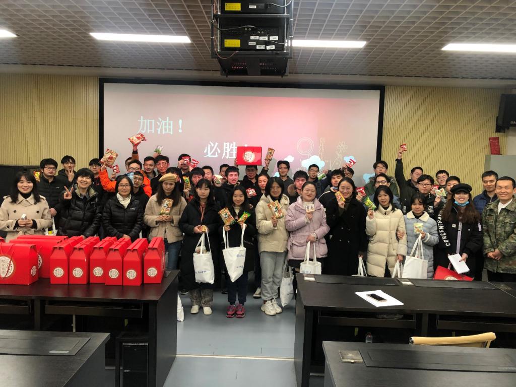 之后,学院老师给同学们发放了慰问旺旺大礼包,祝福同学们考研顺利。