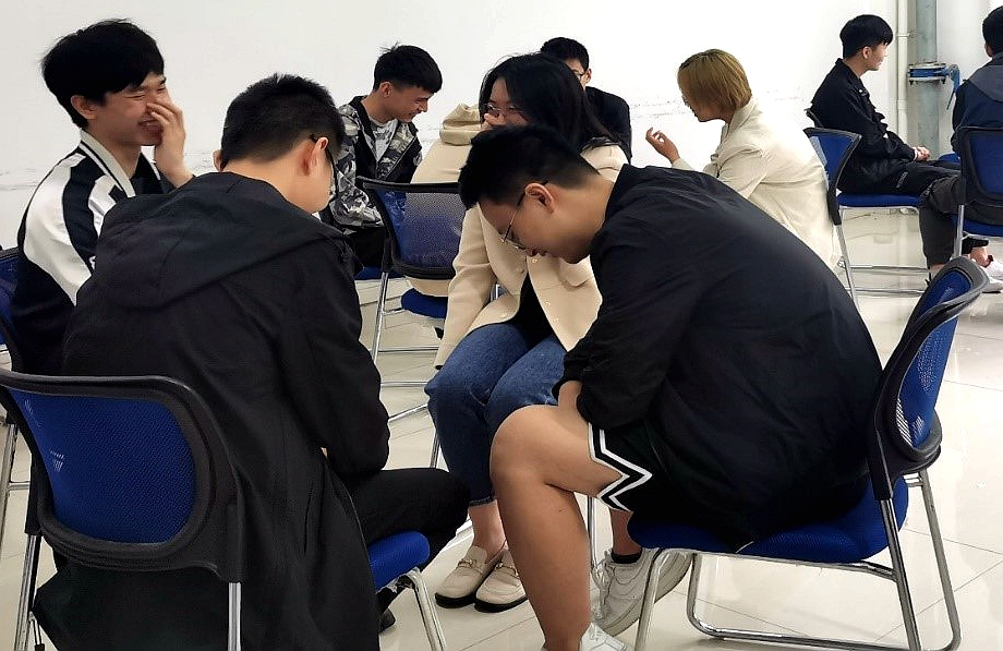心理团辅刚开始,孟雁鹏老师就让同学们围成圈自我介绍以及陈述对本次团辅效果的预期。大多数同学期望在团辅过程中放松自我、学到心理知识,少部分同学则给出幽默回复,调动现场气氛、活跃了同学们的精神。紧接着,团辅进行到了游戏阶段。