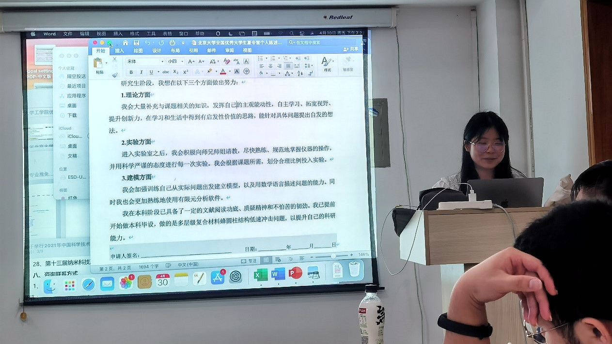 周雨晴同学分享了自己申请学校的详细经过。包括获取夏令营的信息,简历的准备,推荐信和自我介绍的准备,导师的选择等。还向同学们展示分享了自己申请学校过程中准备的申请材料。