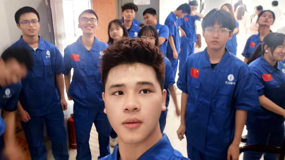 排于第三登场,站定后齐声朗诵,盛赞中国航天。