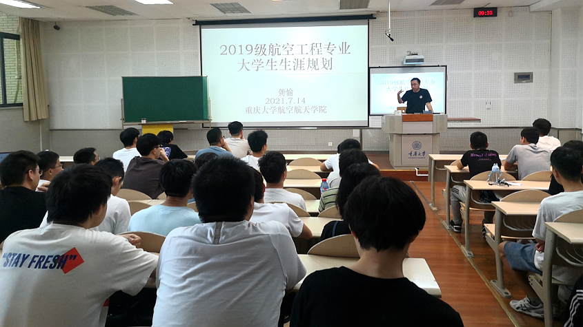 2021年7月14日上午9:30,2019级航空工程专业大学生生涯规划主题班会在虎溪第一教学楼1125教室举行。2019级航空工程专业班导师龚愉老师主持本次活动,2019级航空工程共两个班级的同学到场参加了此次主题班会。