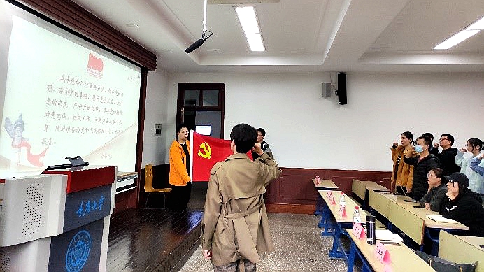 讲述结束后,程乐对“两讲”巡讲师生宣讲团生动而又精彩的讲述表示衷心的感谢。她总结道,四位革命先辈的故事展现了无数共产党人艰苦奋斗的革命精神,没有共产党就没有新中国,希望同学们和党员同志们传承红色基因和精神,坚定信仰,奋勇向前。活动最后,程乐带领全体党员重温入党誓词。