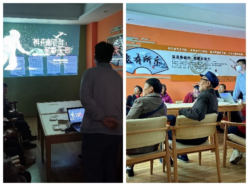 接下来,志愿者代表向老人们讲解我国近年来航空航天领域的发展,以神舟十三号成功升空为切入点,帮助老人们了解国家在这个领域的最新成果和取得的成就。
