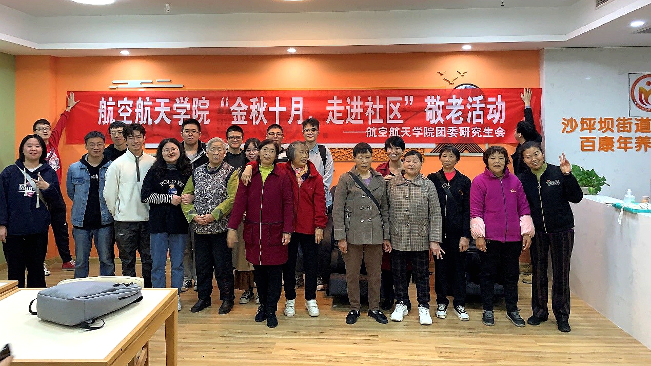 团委研究生会组织志愿者来到沙坪坝街道松林坡社区百康年养老服务站,举办了一场孝老敬老主题的志愿服务活动。
