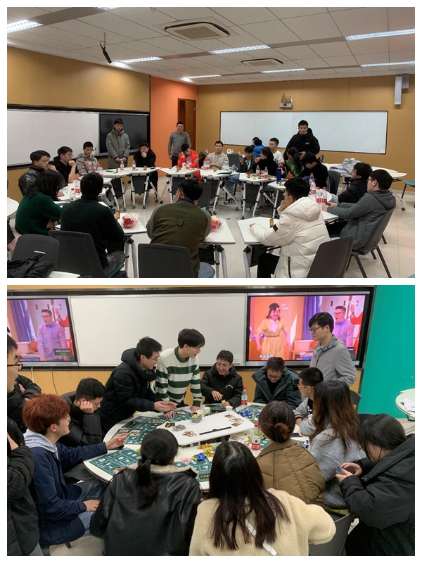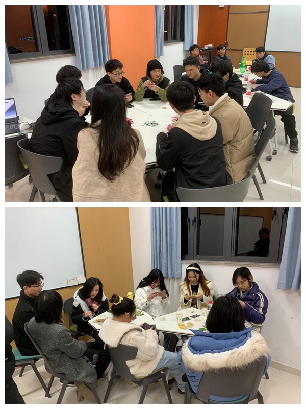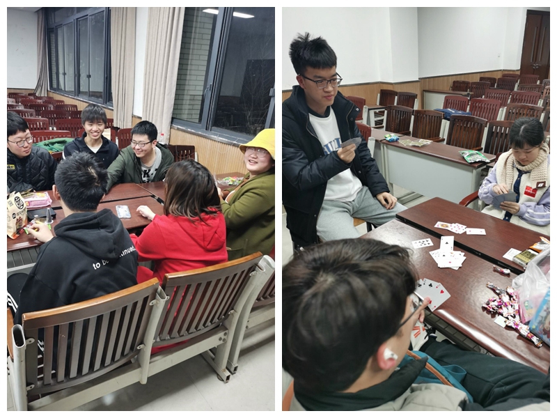 当然,还有另一项比拼脑力的桌游游戏,狼人杀,三国杀,uno,斗地主等。玩法多种多样,大家也在牌桌上绞尽脑汁,争取胜利。在打牌间的互相交流也使得同学们彼此之间更为亲切,更为融洽。