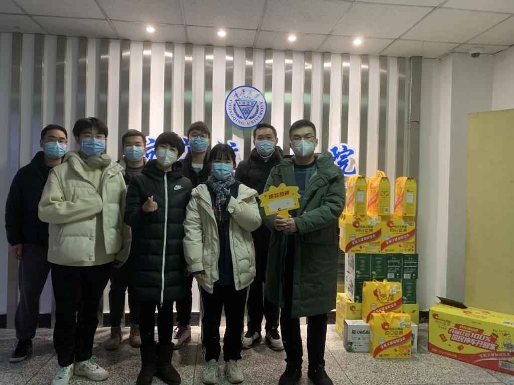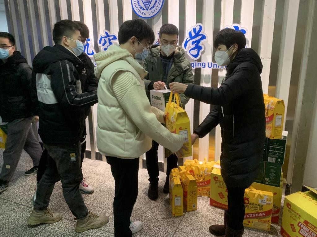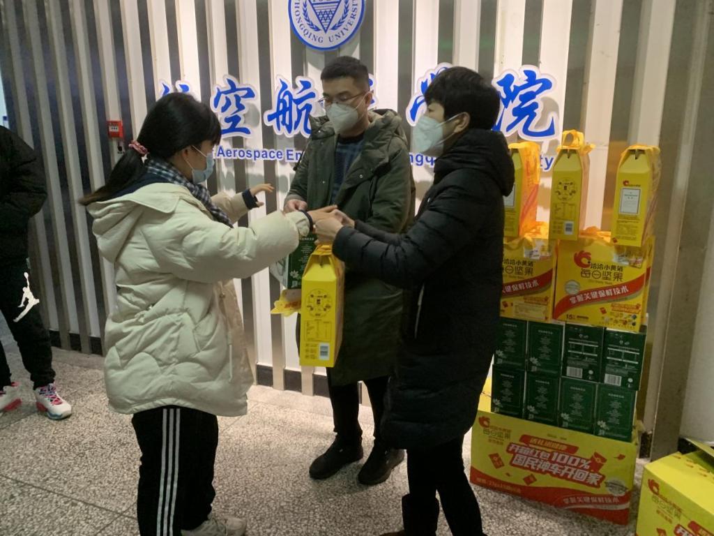 为给留校同学营造温暖温馨的过节氛围,程乐代表学院给留校同学发放了春节慰问品,并请他们向家人转达新年祝福。