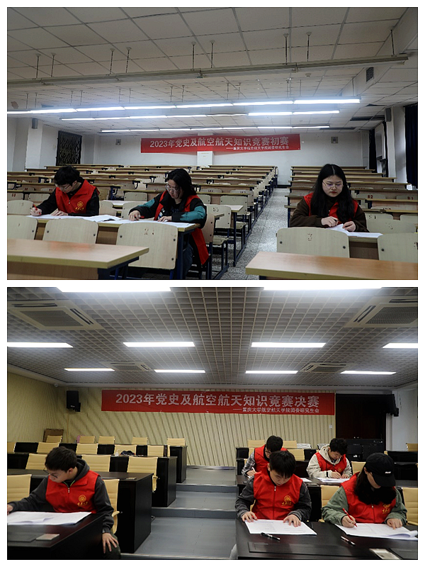 党史及航空航天知识竞赛初赛和决赛分别于3月25日14:30和4月1日10:30在重庆大学A区研究生院306和理科楼010室顺利举办。在考场上,同学们认真作答,挥洒汗水。