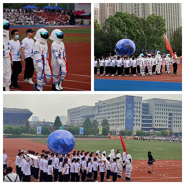 运动会开始前,学院本科生团委学生会即开始着手设计、组织运动会开幕式队列方阵。为在开幕仪式上展现航院风采,学生会结合航空航天专业特色与2021级本科生辅导员张元勋老师的建议后,决定采用由身着航天服的同学引领方阵,方阵中穿插有同学手举飞机模型和月球模型的方案参加运动会开幕式。