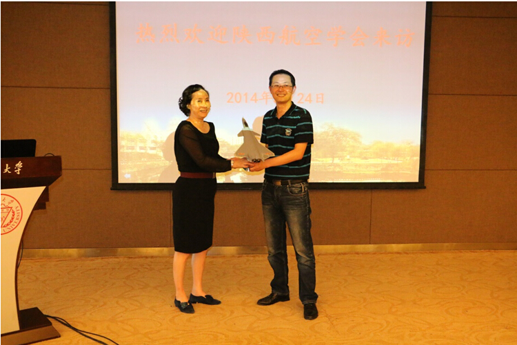 陕西省航空学会秘书长向河首先代表学生工作组发言,她首先详细介绍了陕西省航空学会的情况及这次参加交流活动的学生构成,随后她代表陕西省航空学会向赌博游戏app-赌博app下载